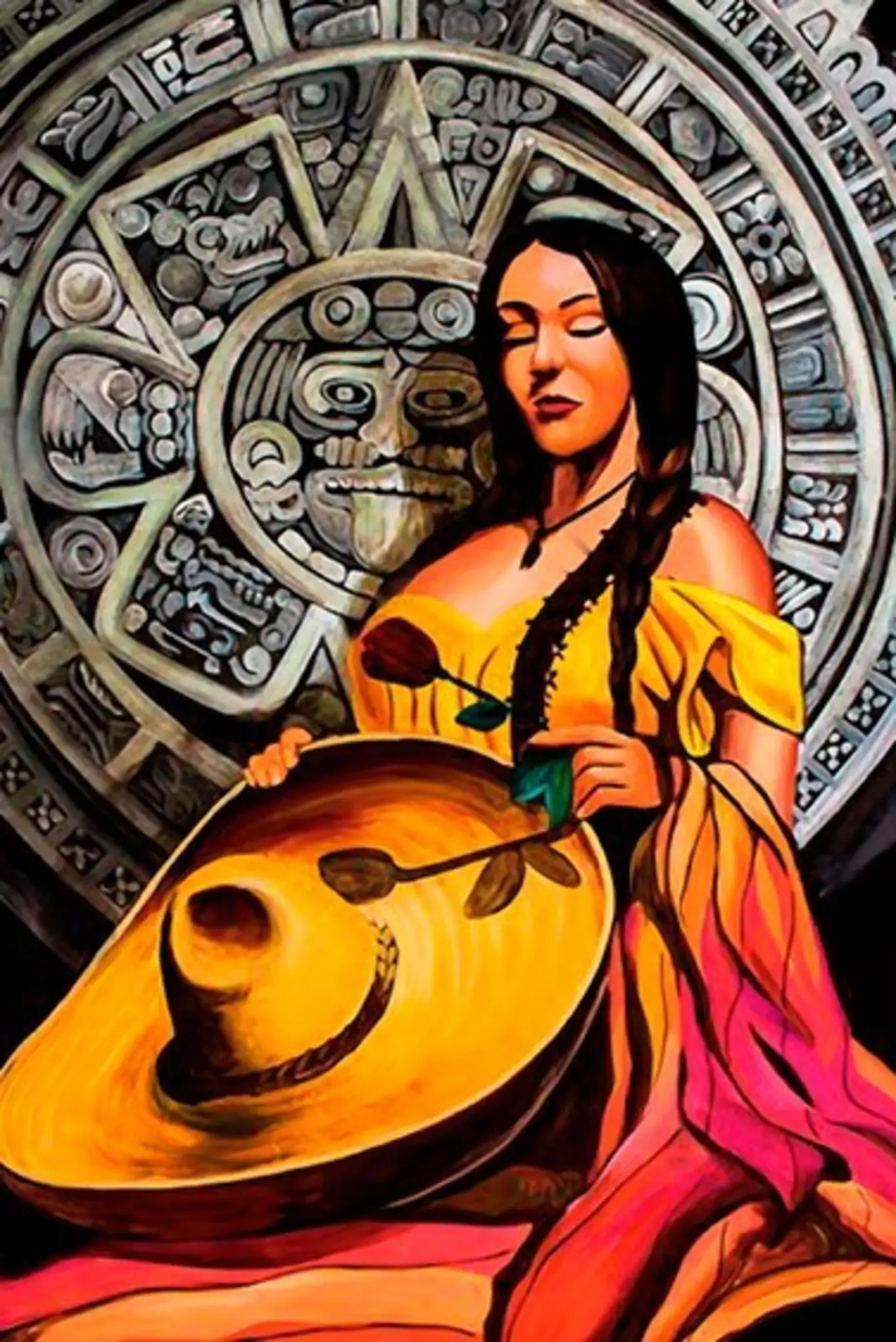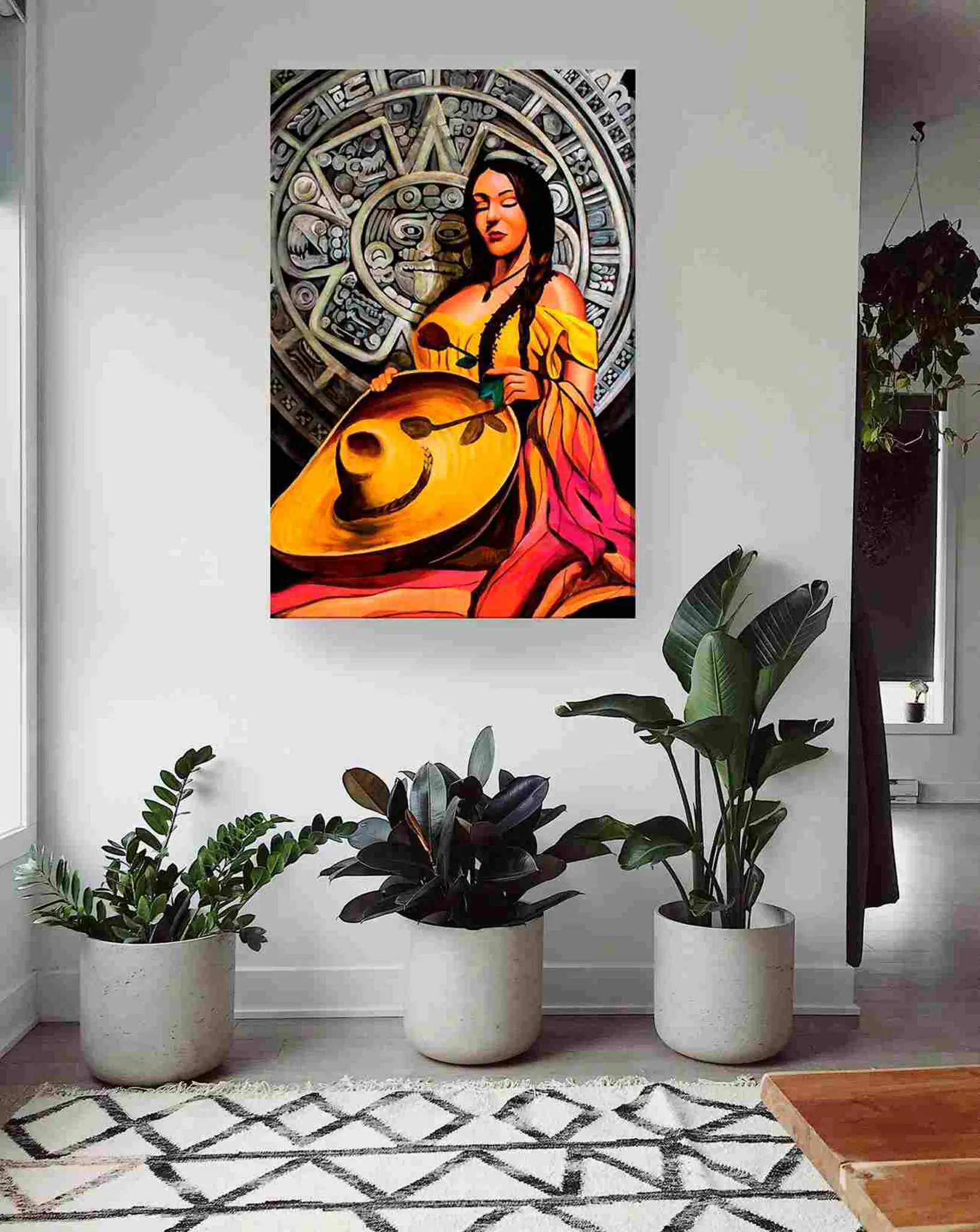 Cuadro en lienzo canvas decorativo mujer calendario azteca