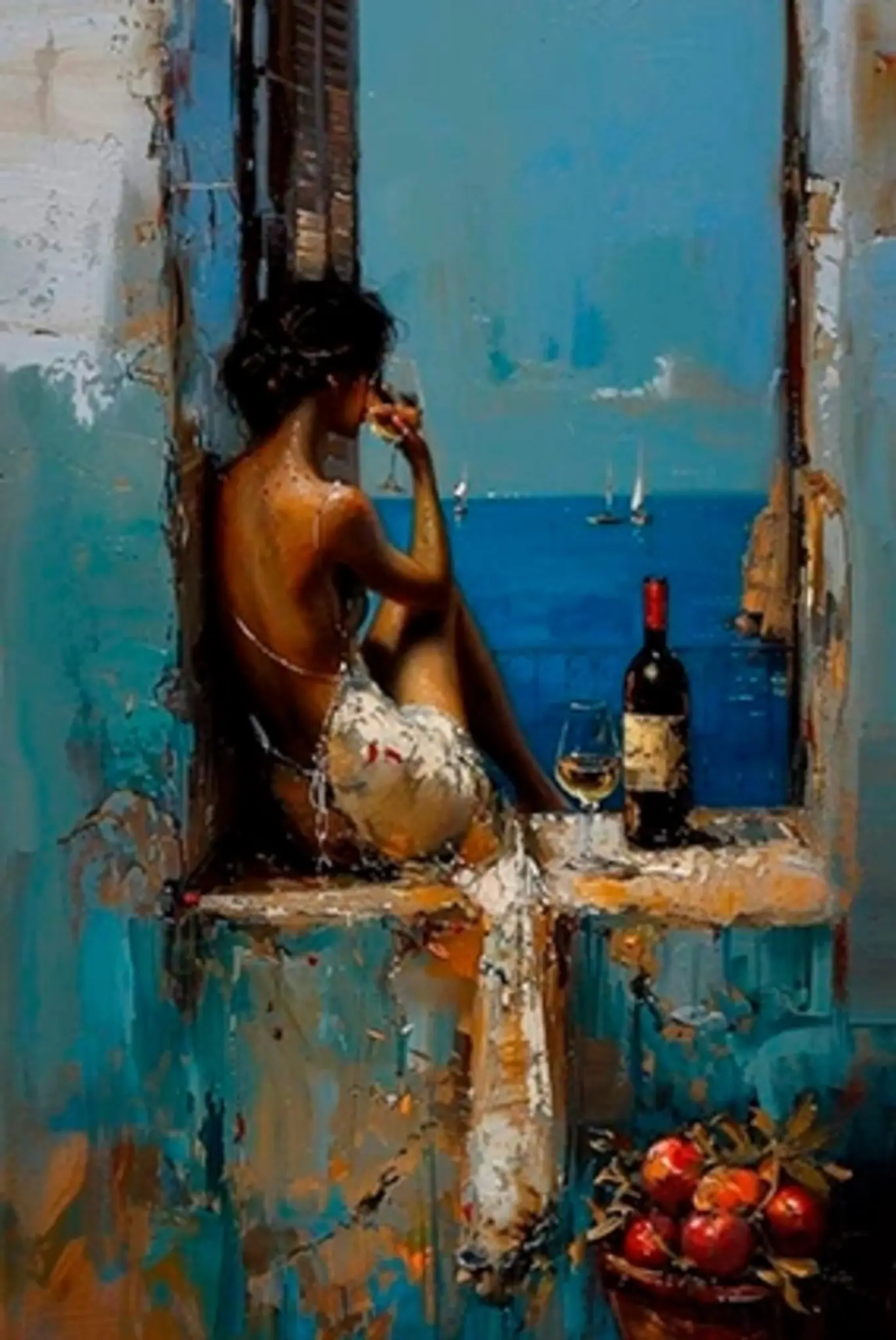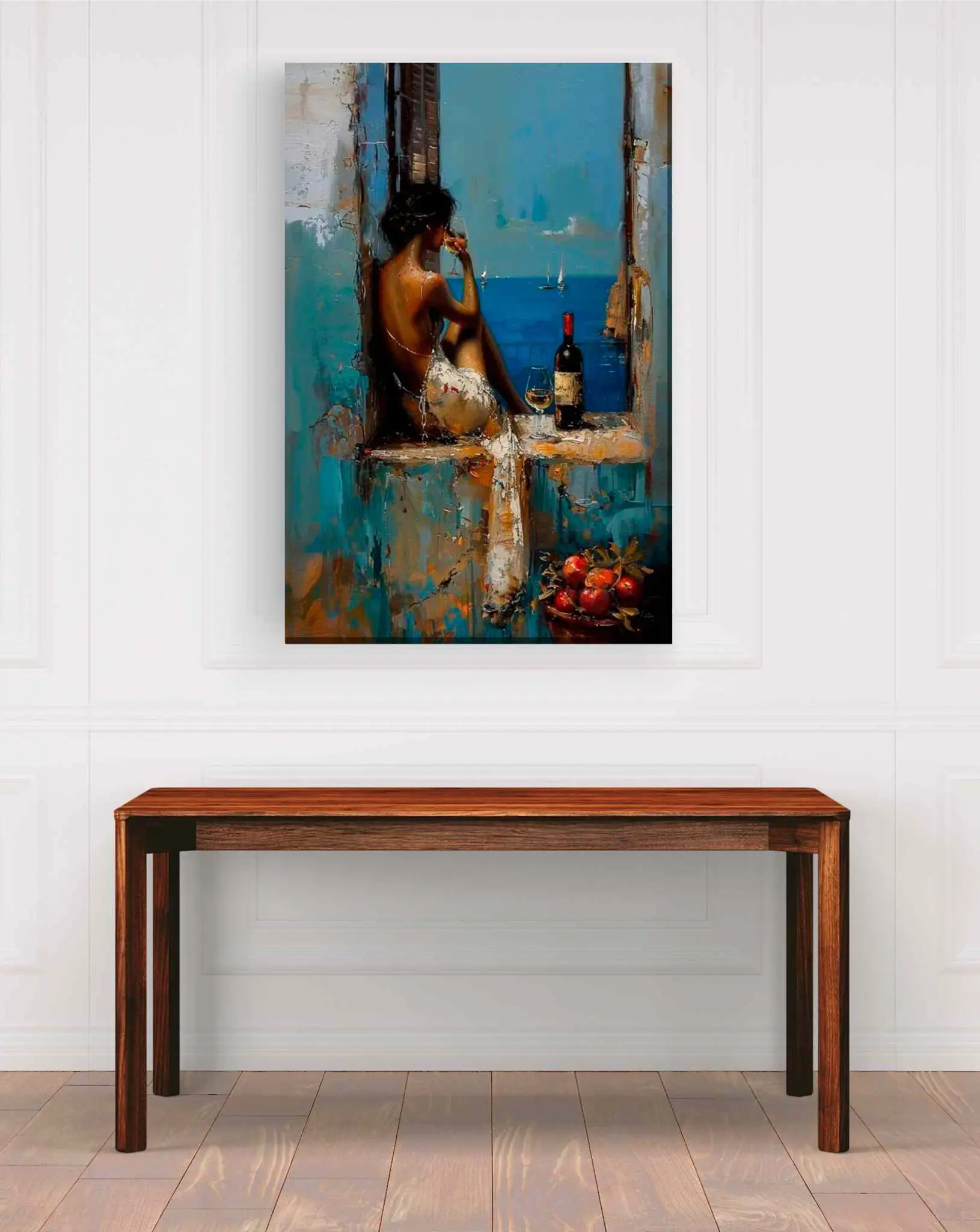 Cuadro en lienzo canvas decorativo mujer disfrutando la vista del hermoso mar