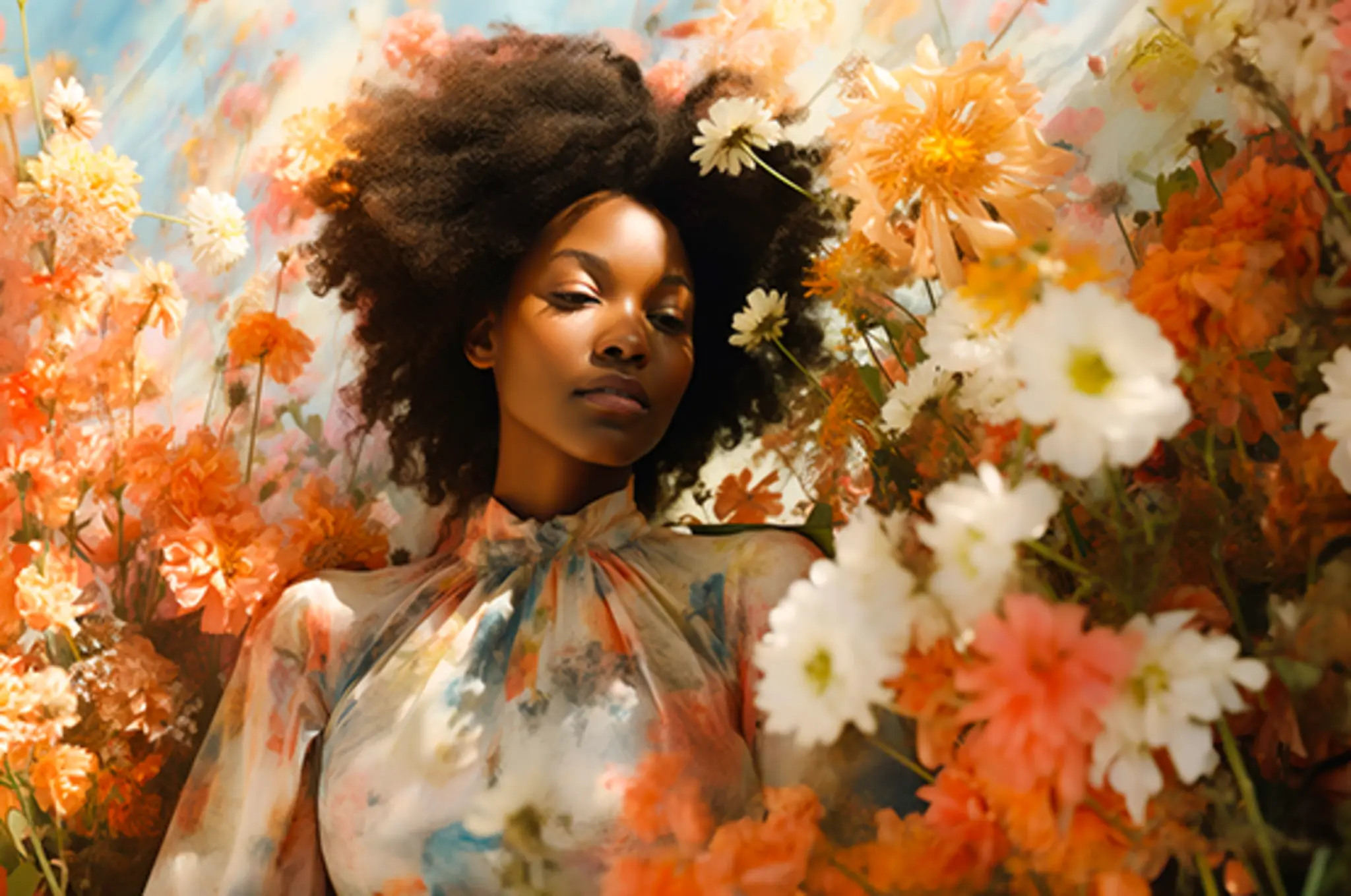 Cuadro en lienzo canvas decorativo mujer entre flores