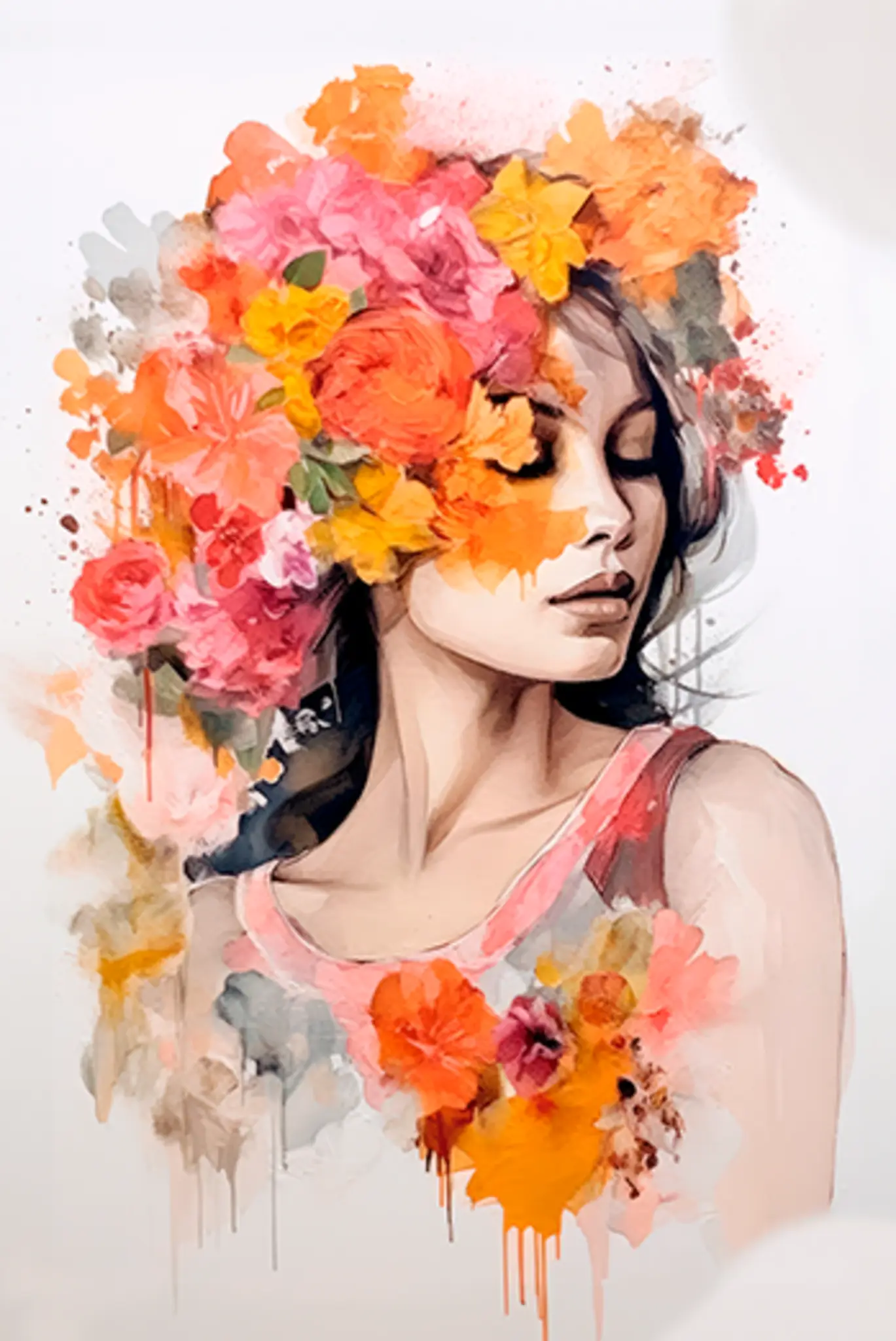 Cuadro en lienzo canvas decorativo mujer flores salmón
