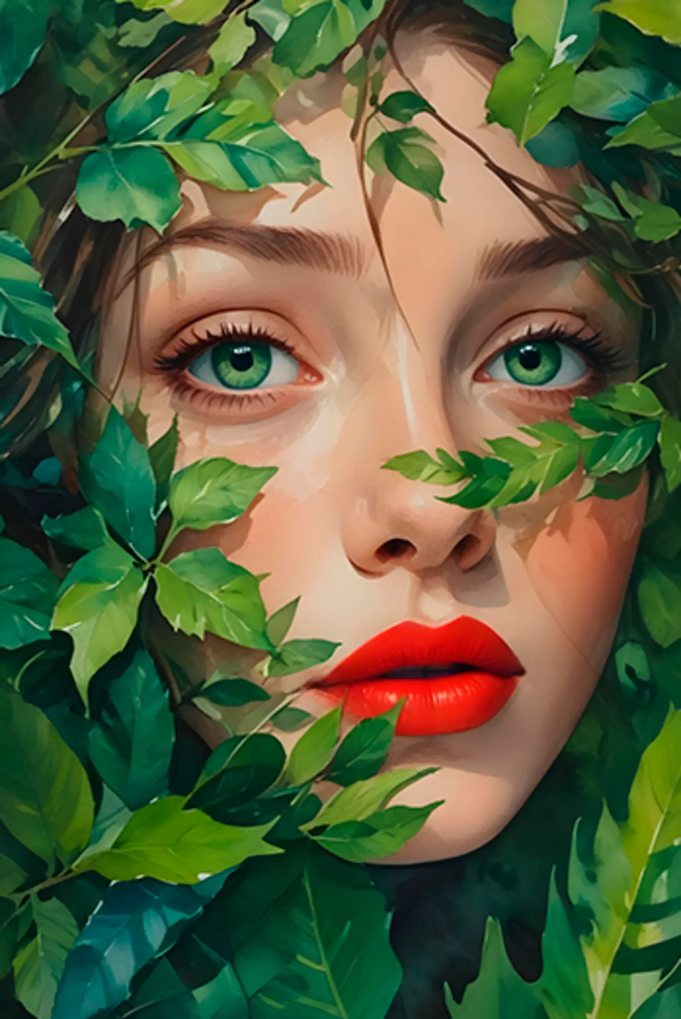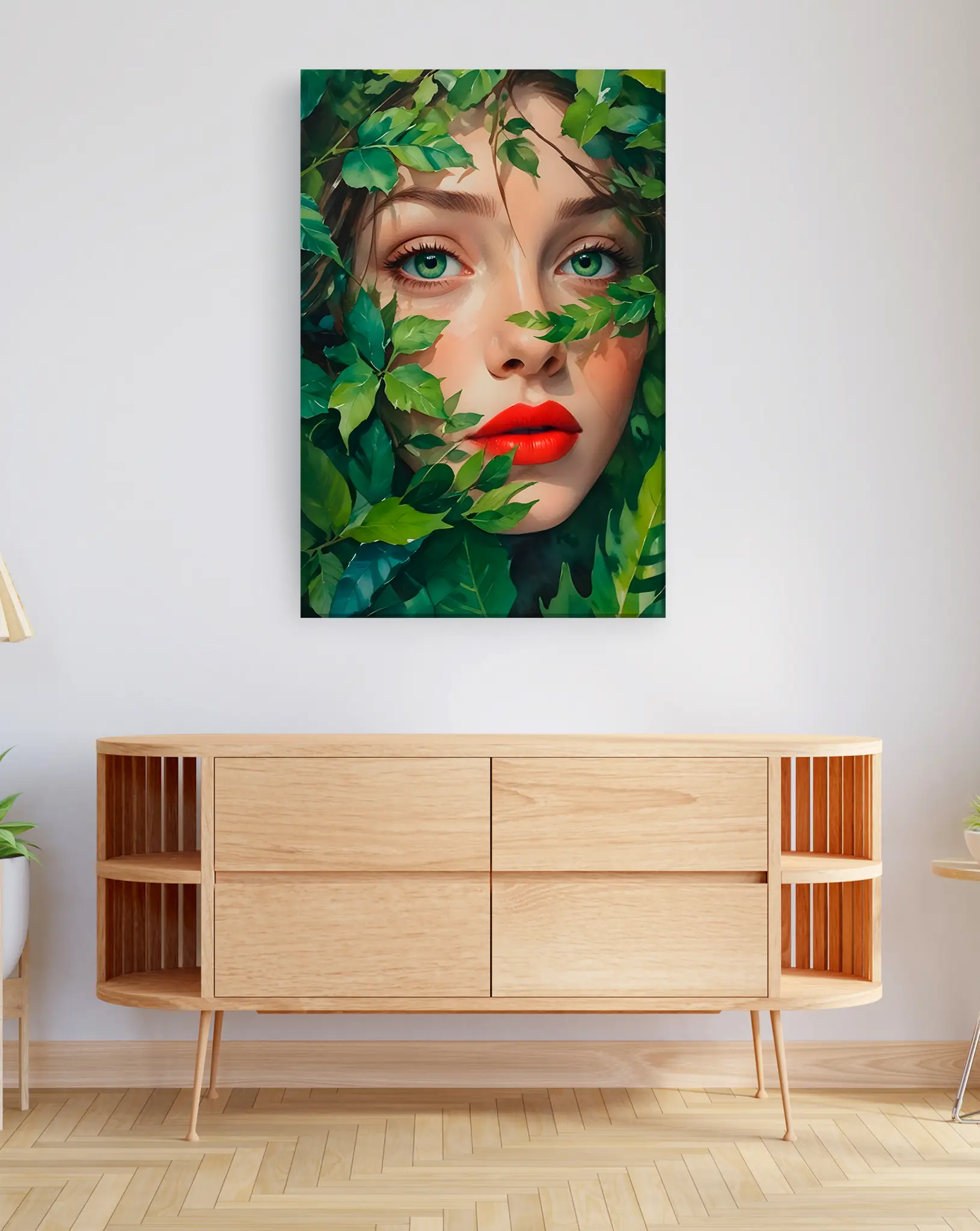 Cuadro en lienzo canvas decorativo mujer labios rojos hojas
