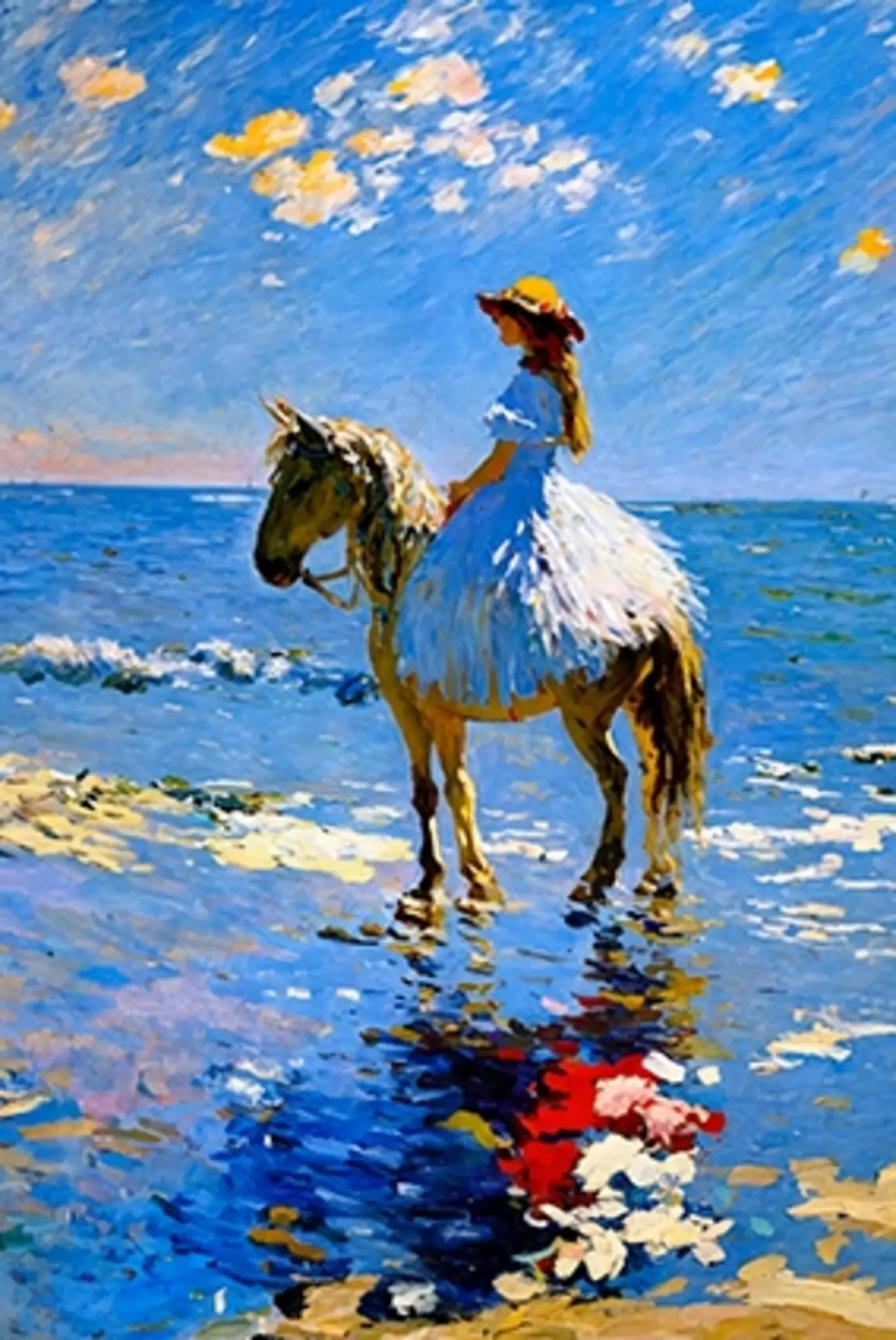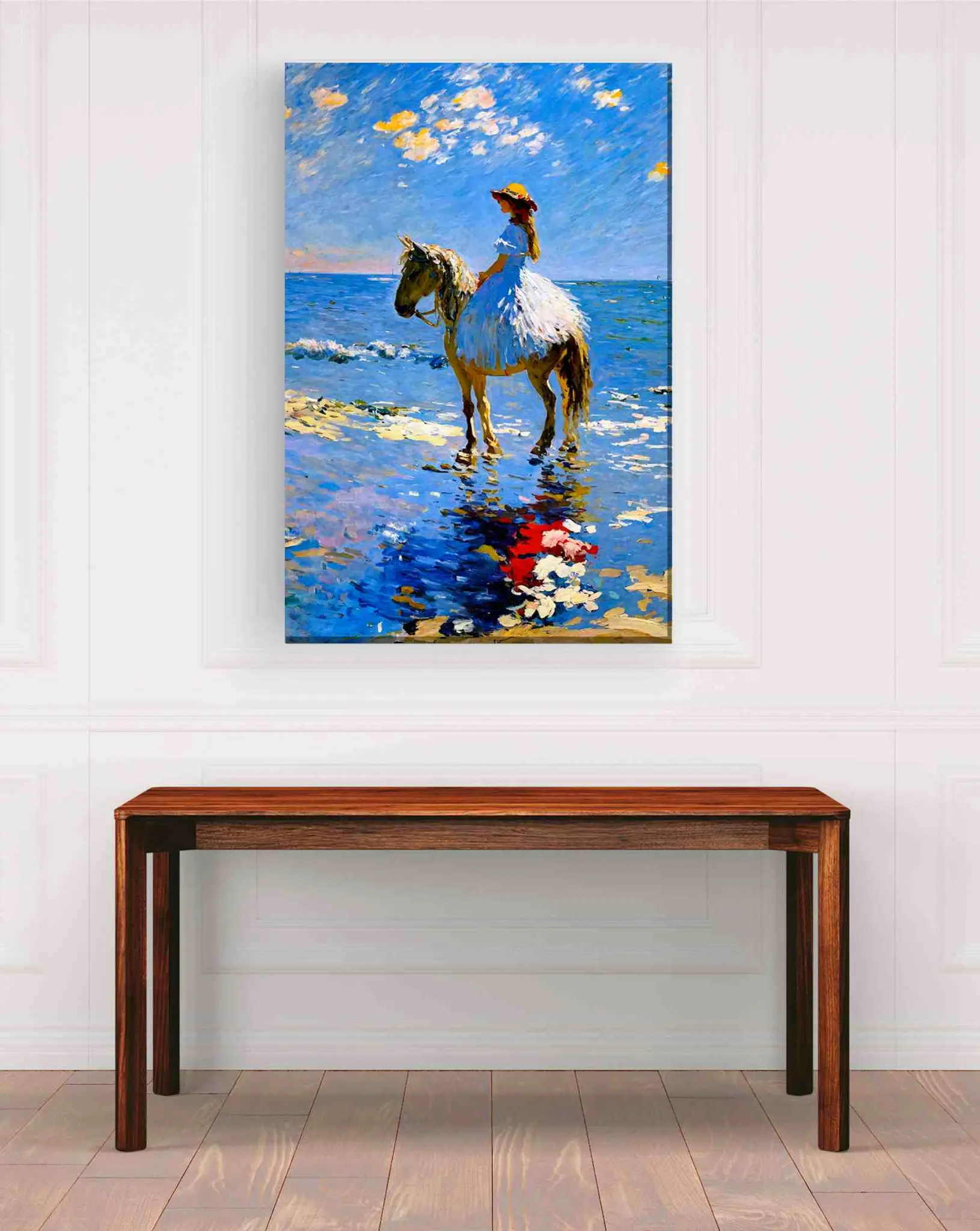 Cuadro en lienzo canvas decorativo niña montando caballo en la playa de Claude Monet