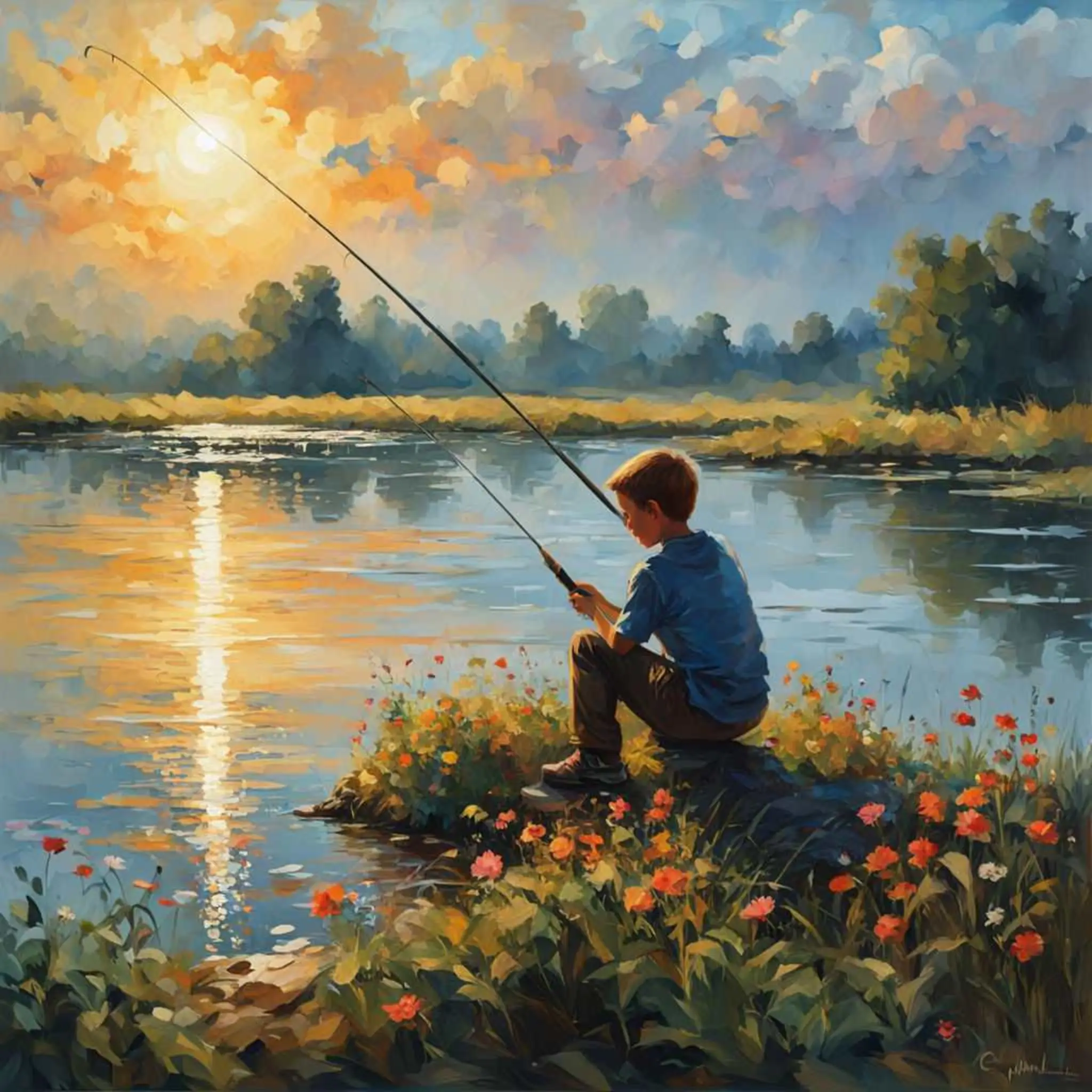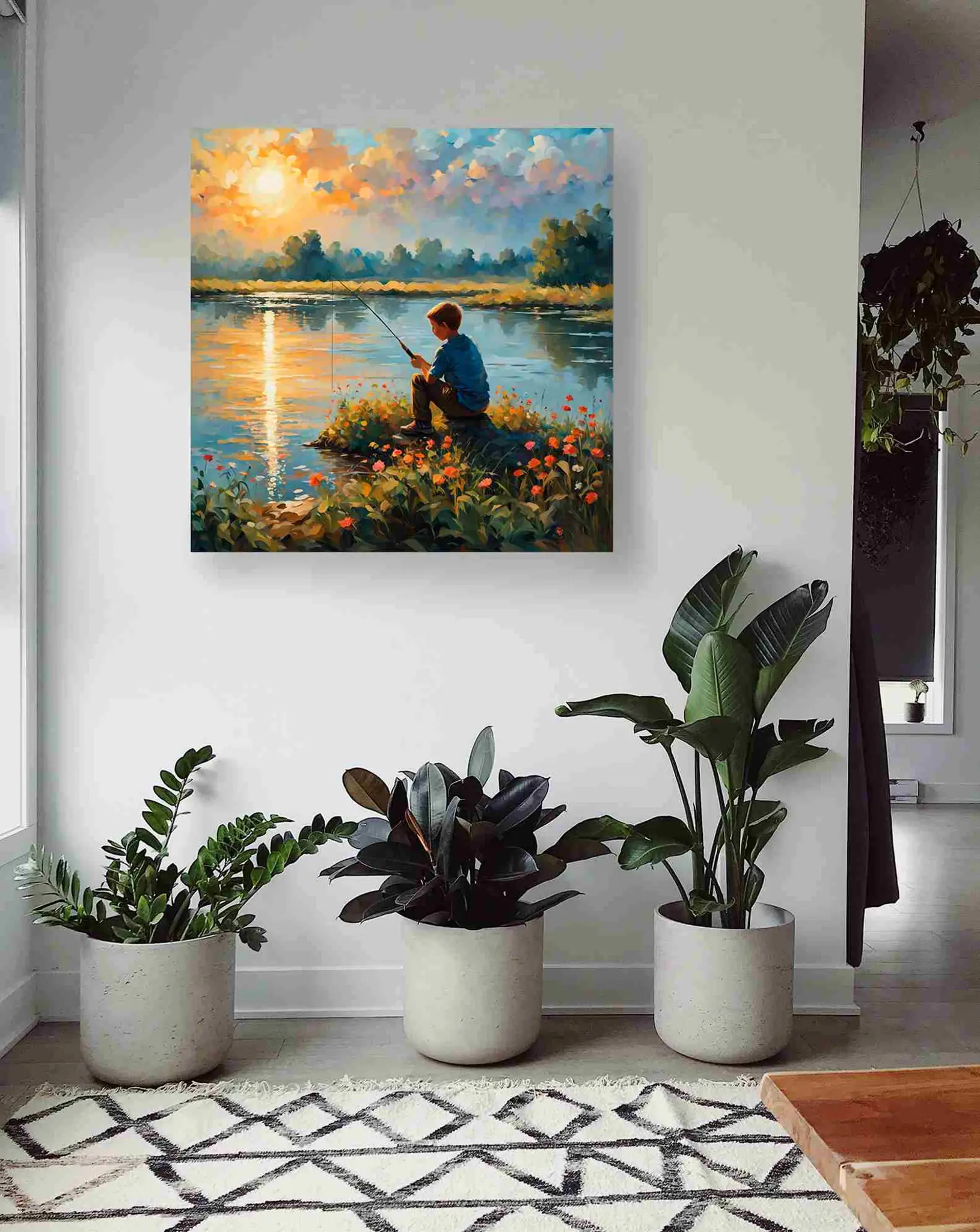 Cuadro en lienzo canvas decorativo relajante niño pescando