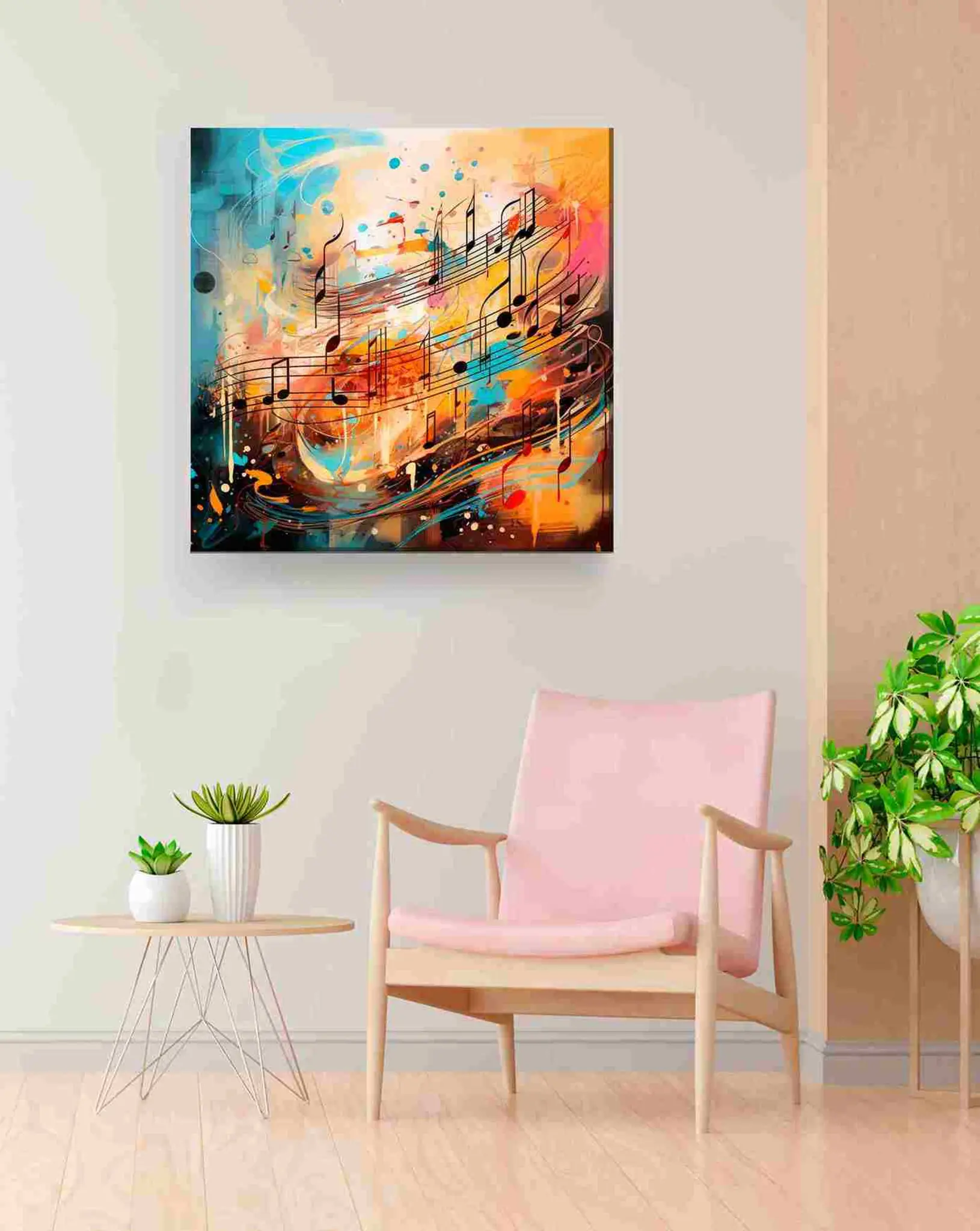 Cuadro en lienzo canvas decorativo notas musicales en colores
