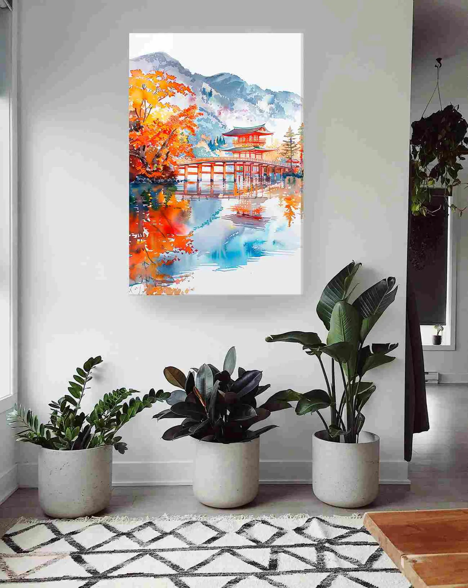 Cuadro en lienzo canvas decorativo paisaje japonés estilo acuarela
