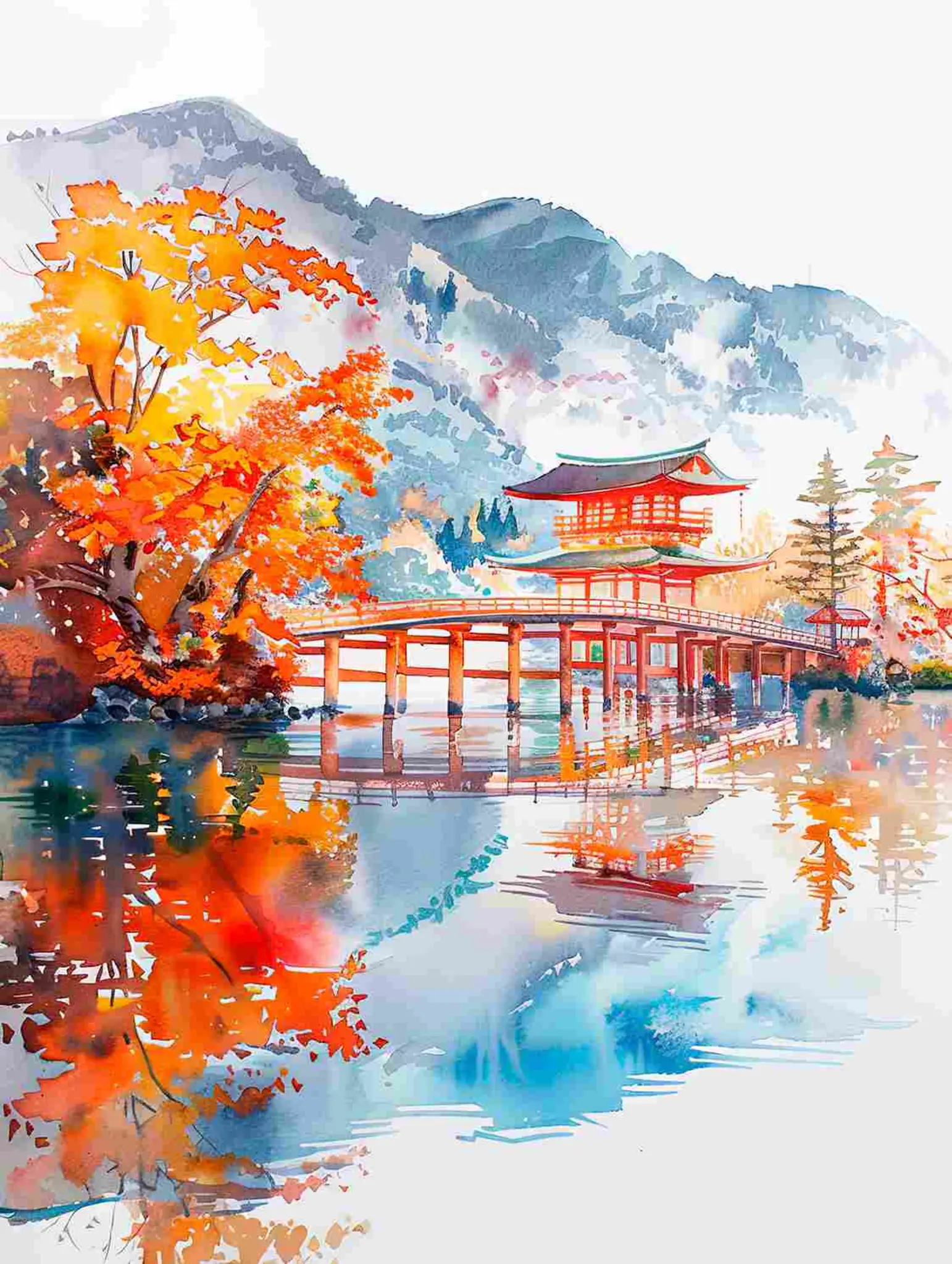 Paisaje Japón acuarelaPaisaje Japón acuarela