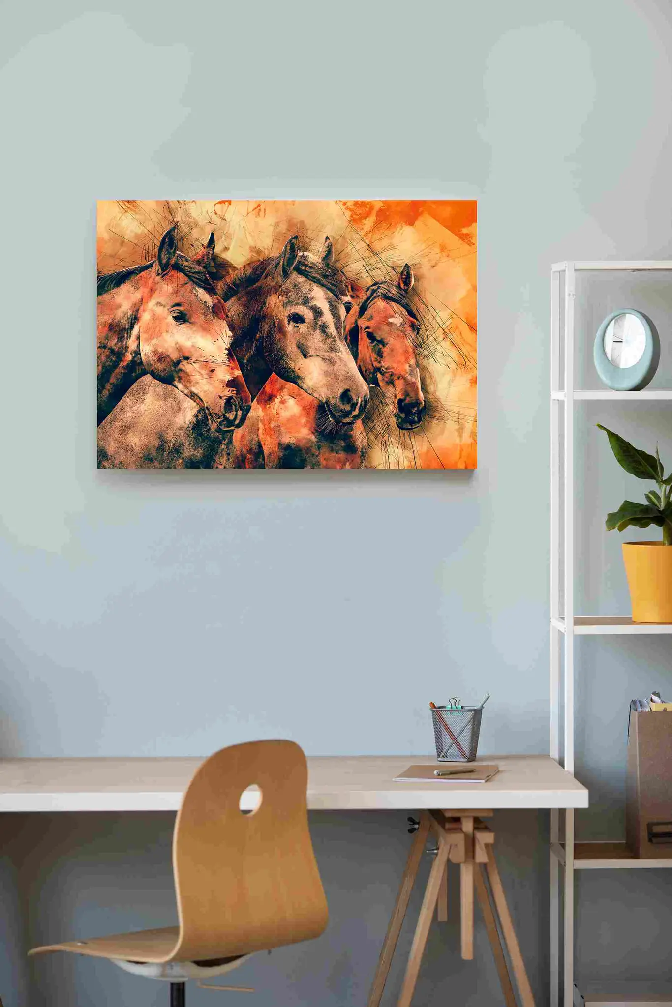 Cuadro en lienzo canvas decorativo en pintura rupestre 3 caballos