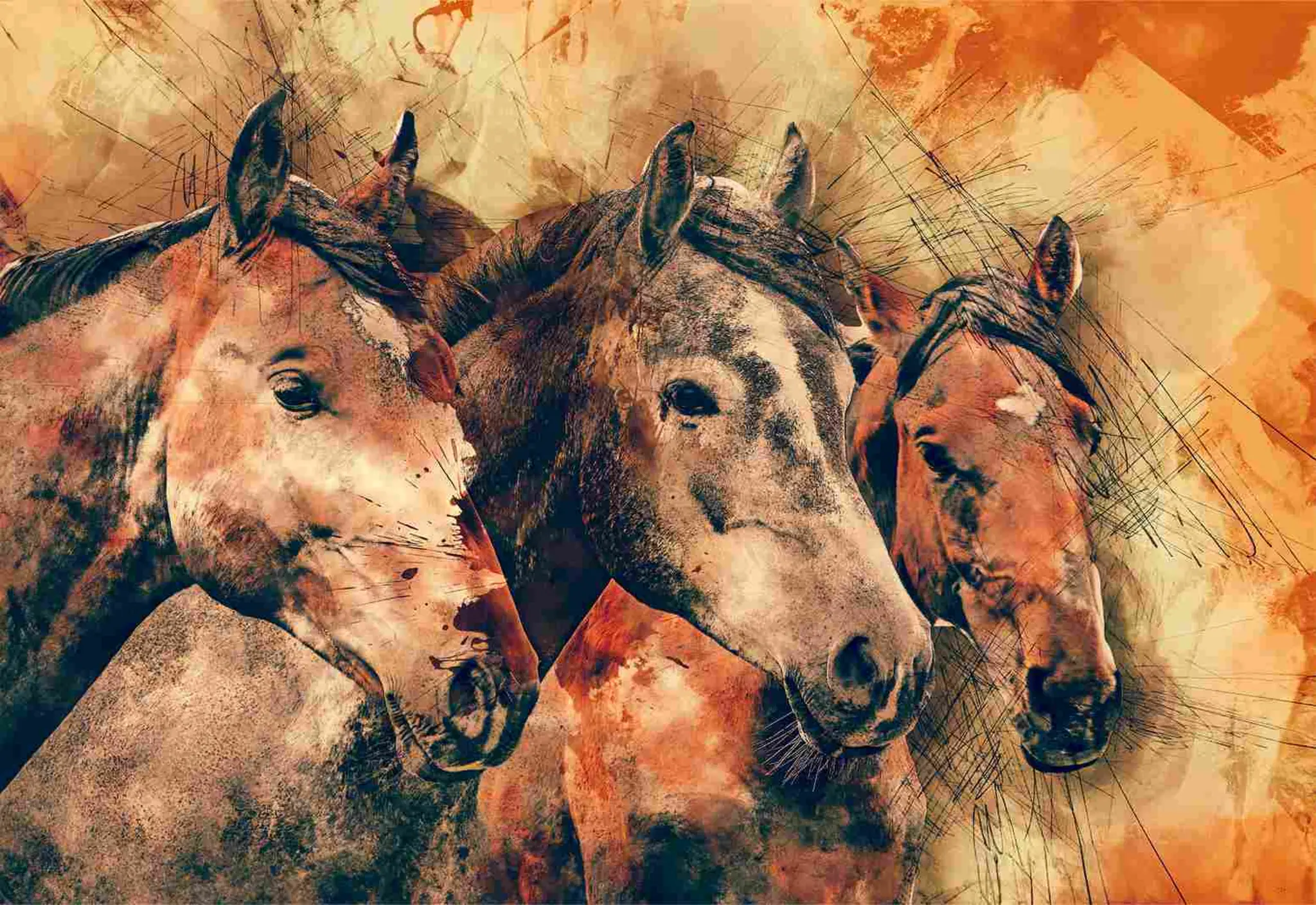 Pintura rupestre 3 caballos