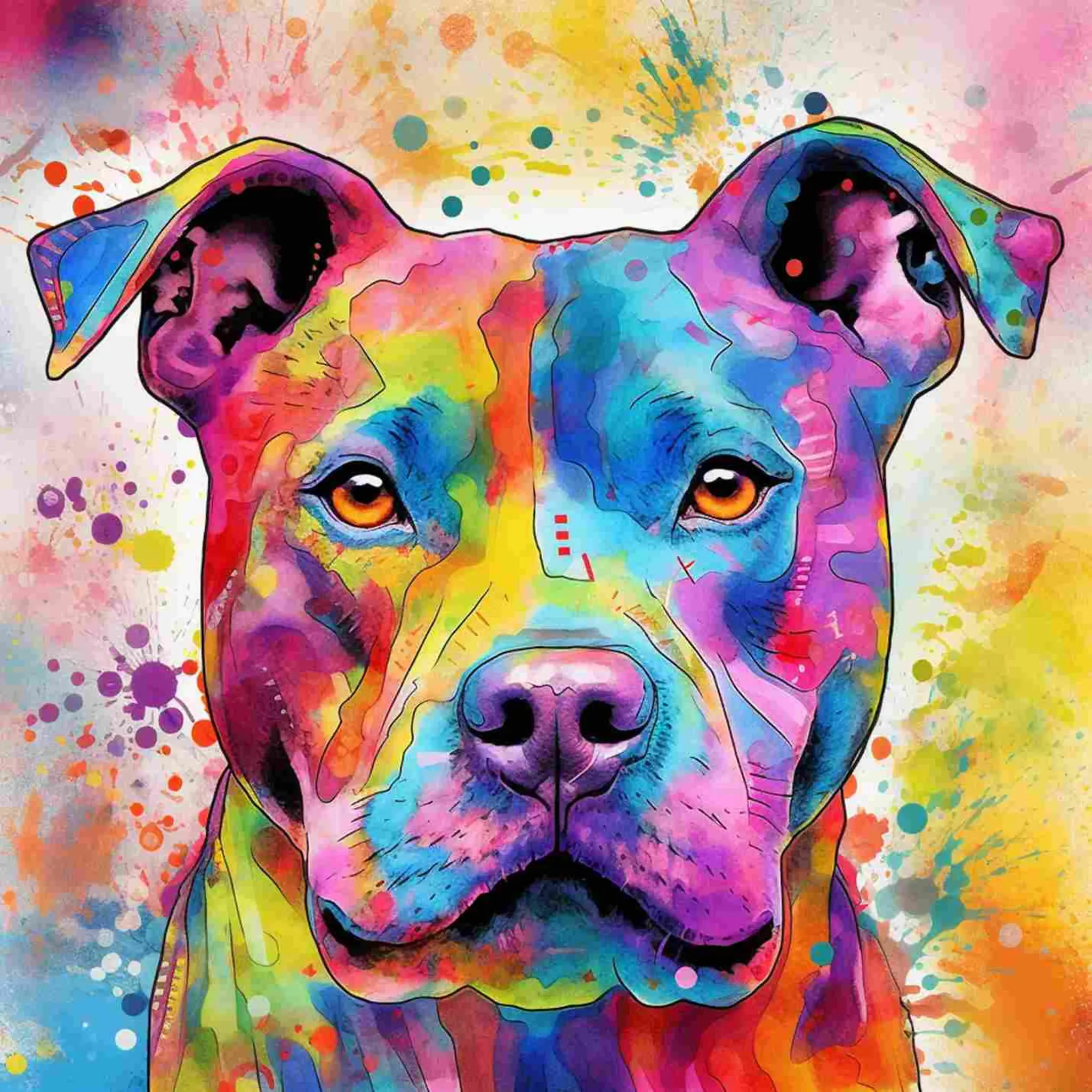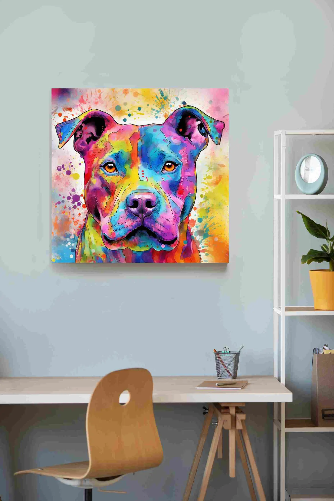 Cuadro en lienzo canvas decorativo pitbull impreso estilo acuarela