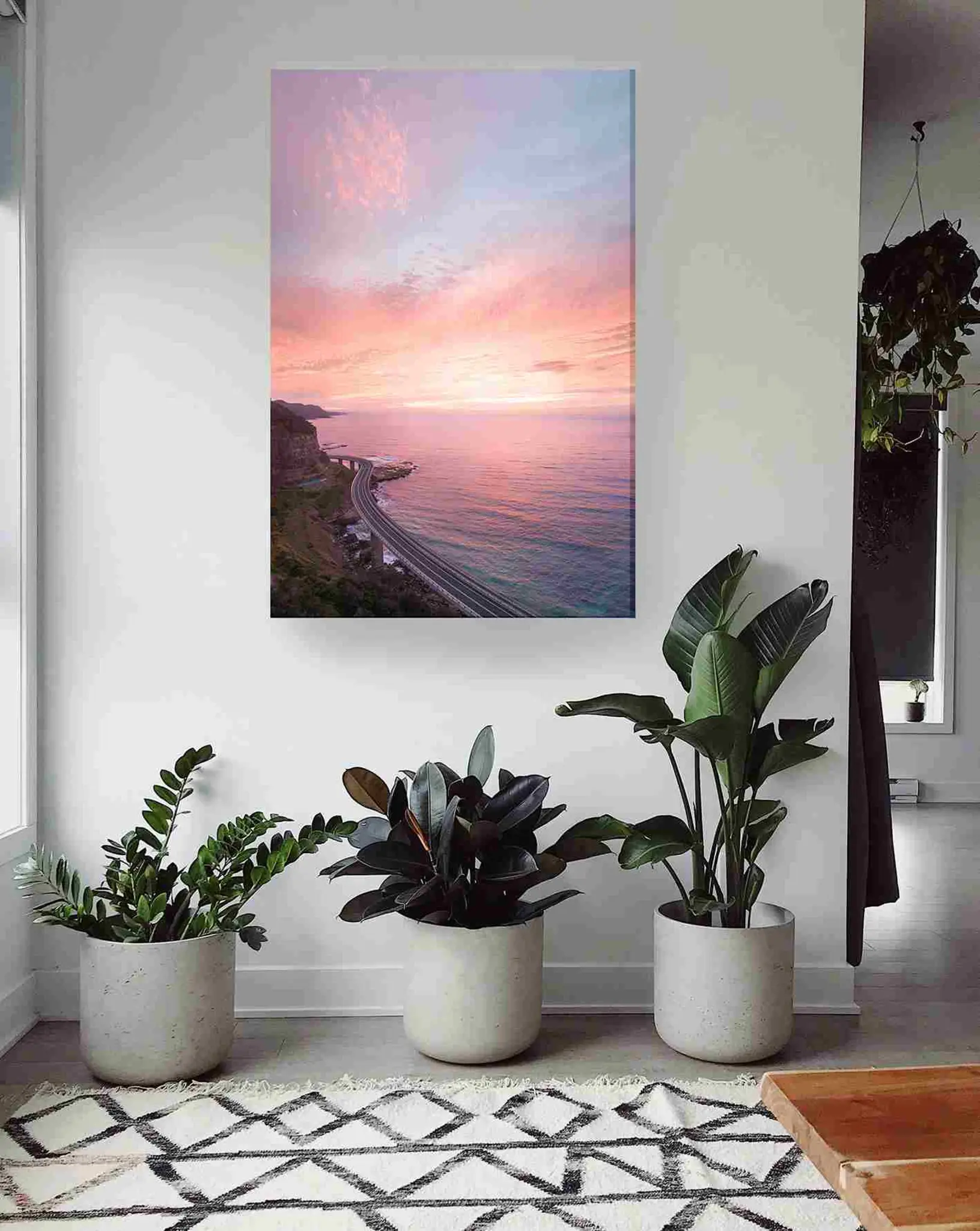 Cuadro en lienzo canvas decorativo carretera sobre playa al atardecer