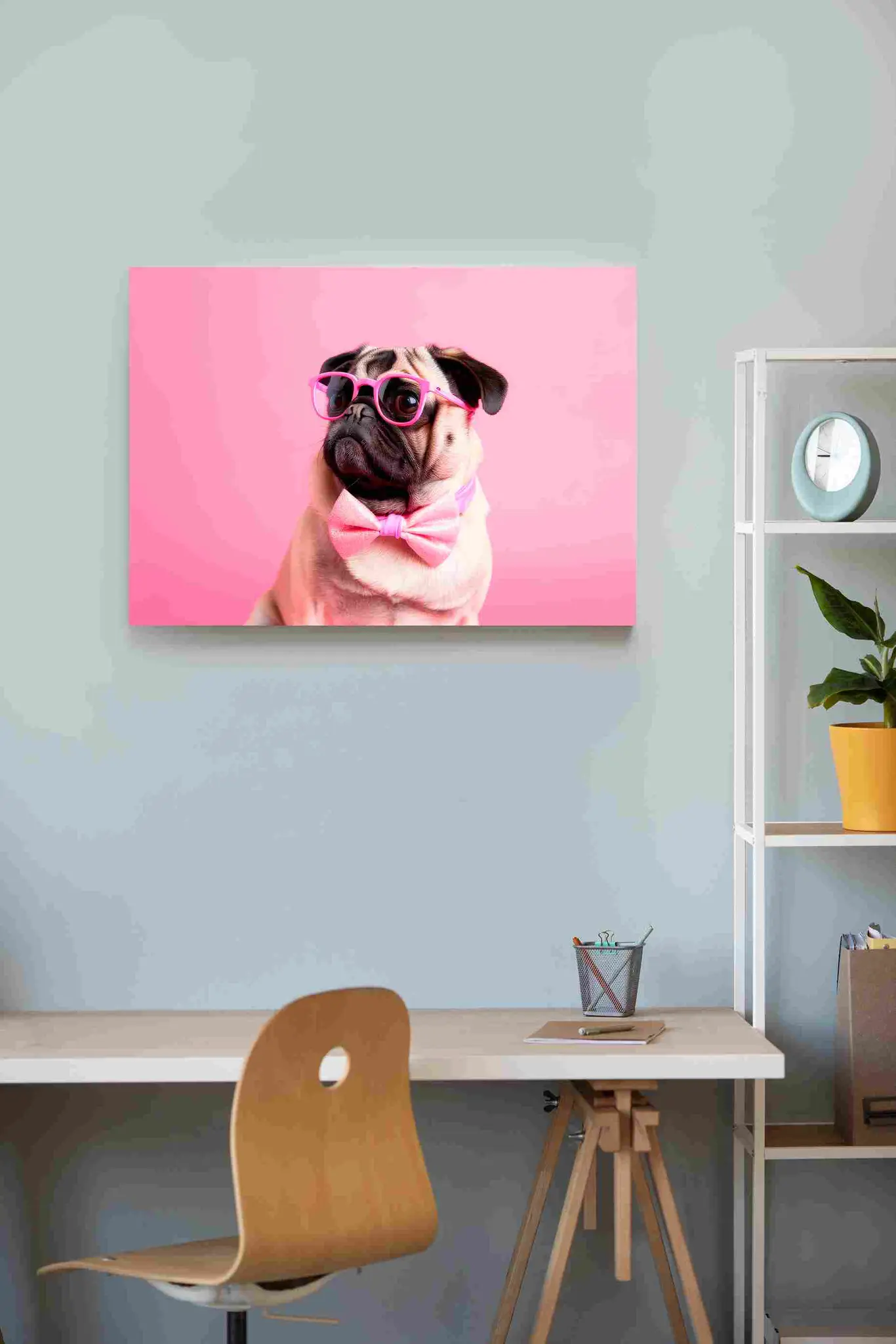 Cuadro en lienzo canvas decorativo pug sobre un fondo rosa