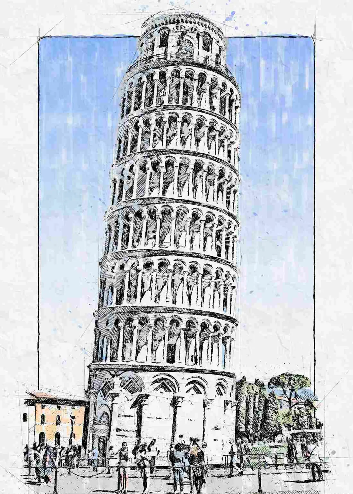 Cuadro en lienzo canvas decorativo Torre Pisa Sketch