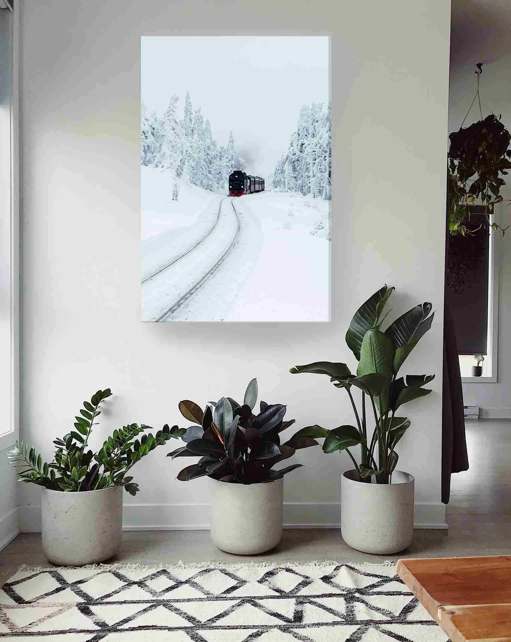 Cuadro en lienzo canvas decorativo impresionante tren sobre la nieve