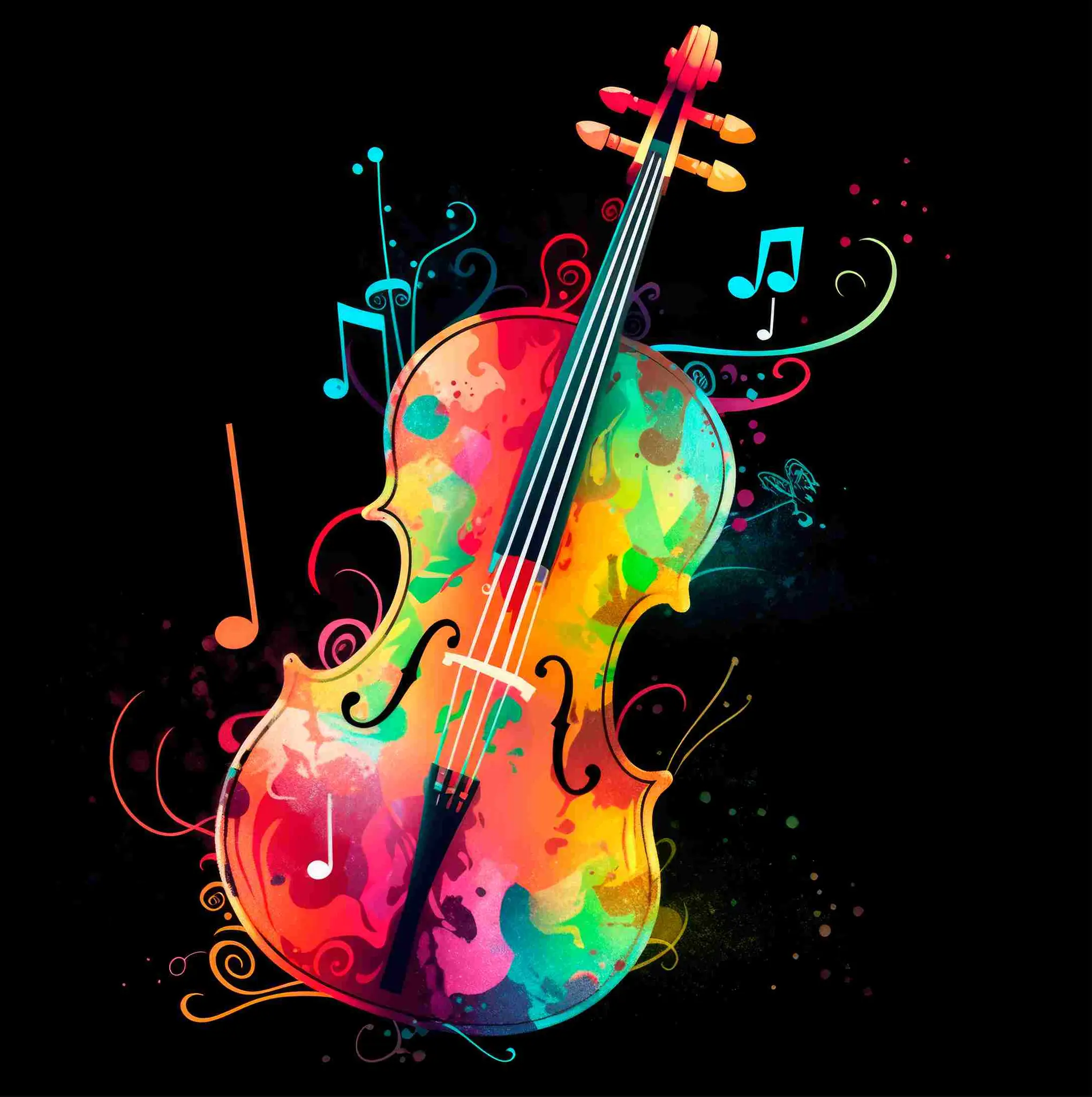 Cuadro en lienzo canvas decorativo violín a colores en fondo negro