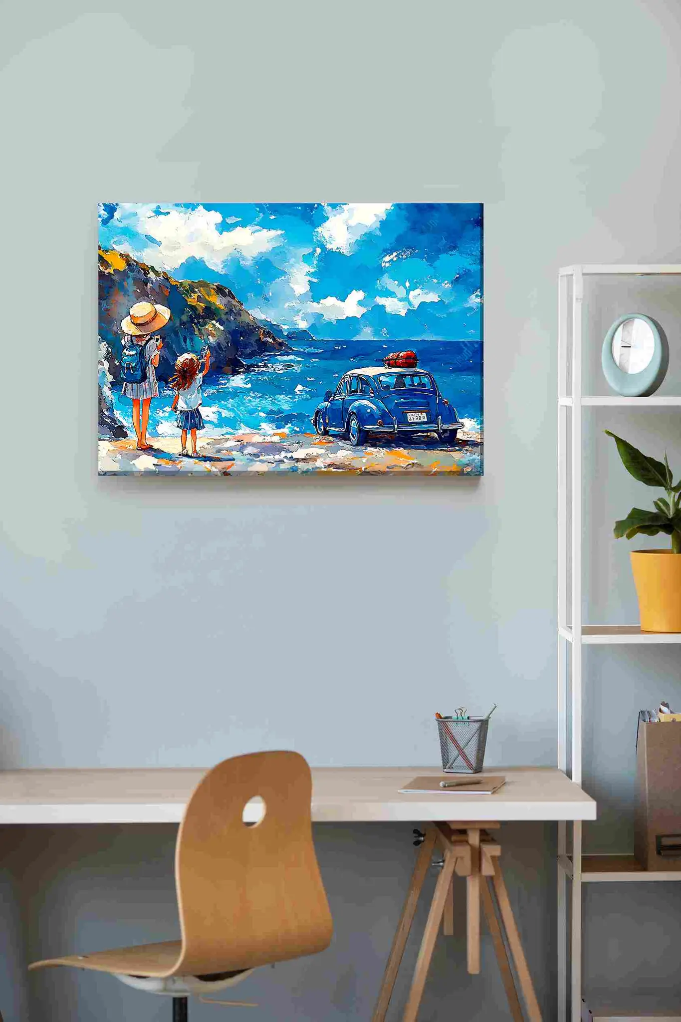 Cuadro en lienzo canvas decorativo vocho azul playa acuarela
